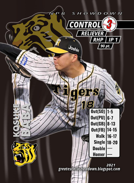 Masato Morishita follows up his excellent 2020 rookie campaign with a good, but not excellent 2021 season. Closer Ryoji Kuribayashi burst onto the scene in 2021 and took home Central League Rookie of the Year and a gold medal. He was a perfect 37/37 on save opportunities, had a 0.86 ERA, gave up 1 home run all year, and allowed a measly 4.0 H/9 (although 4.8 BB/9) with 13.9 K/9. He earns the second of the four Tier 0 reliever cards.