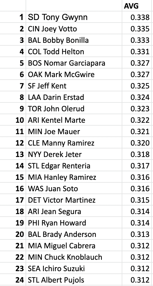 In the National League, the Phillies did it!!! Despite the Marlins hot 24-6 start, the Phillies overcame the 9 game deficit that existed after Part I, chipping away until they forced a game 163 for the NL East crown (with the loser guaranteed to host the wild card game). We don't have game by game results, but I'm choosing to believe that the Phillies had a dramatic win over the Expos right after a dramatic comeback by the Mets ruined the Marlins chances to clinch earlier that day, perhaps a David Wright walkoff. The NL West had a similarly tight race, with the Dodgers and DBacks tied heading into the final part, only for Arizona to ride their potent offense (3rd most runs scored) to a division crown! Those teams will have to take down the Brewers, who are the only team to pass 100 wins thanks to an unbelievable pitching staff (2.81 team ERA) and stars like Prince Fielder (42 HR, 118 RBI). The mighty Cubbies and HR leader Sammy Sosa (57 dingers) also look to threaten in the wild card game.