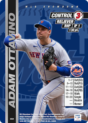 Been a while since we put out some cards, but we've been inspired by Cal's awesome 2011 set to put out some 2024 cards - especially when a battle between two of the highest payrolls in baseball is set to begin in the NLCS. I apologize if there's a change here-or-there that the teams made between NLDS and NLCS, but I'm just rocking with the playoff guys that I see (it's already going to be *a lot* of cards for y'all). All cards were made using the epic MLB Showdown bot, which you can use to make your own cards too! Without further ado, let's take a look at the teams in the NLCS: Dodgers and Mets!